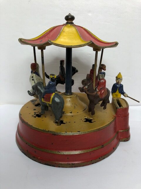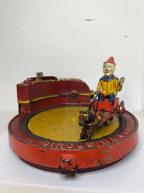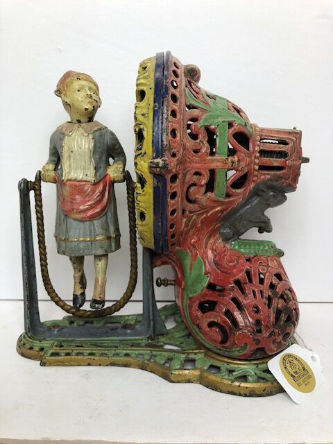 Mechanical banks are in fact one of the first toys that were developed after the Civil War for children. Beyond being a source of wonder and fun, they were also there to teach a valuable lesson by encouraging children to save their money. Remember, a penny was worth a lot of money in the 19th Century. The themes represented were what children were familiar with and saw in their everyday lives. The sense of childhood wonder is ever present throughout the history of mechanical banks and as the older ones have become collectibles mainly prized by adults, they are still being made today for today’s children.