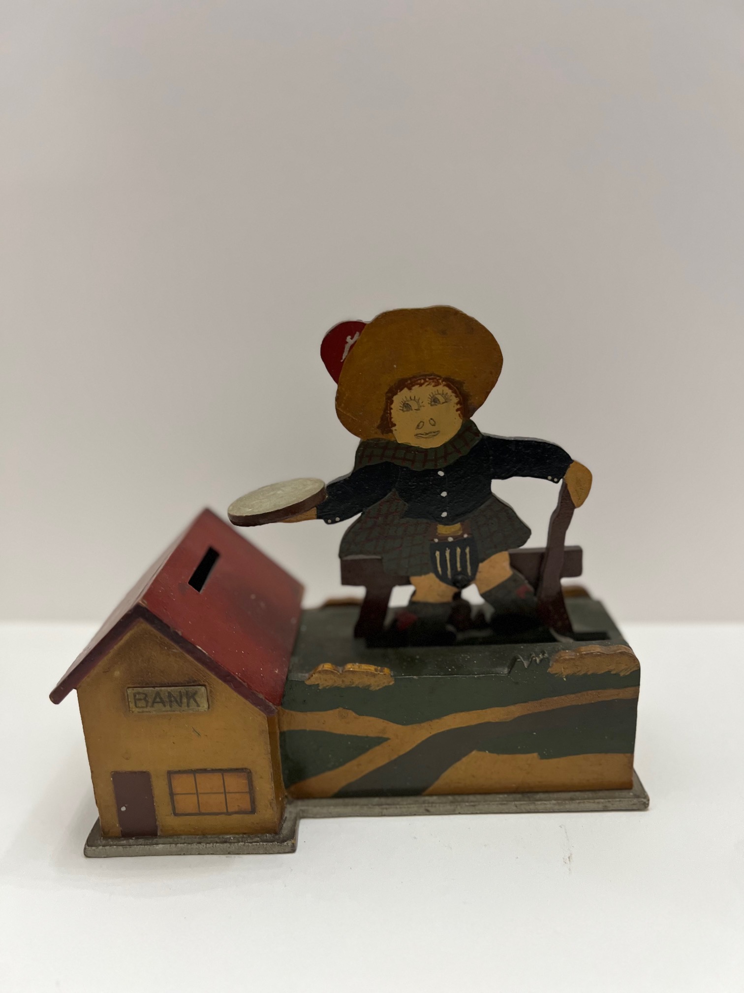 Less common than metal or tin, wooden banks offered clever designs—often disguised as furniture or using tilt mechanisms to deposit coins. These trick-drawer and leaning-figure styles add a unique charm to mechanical bank collections.